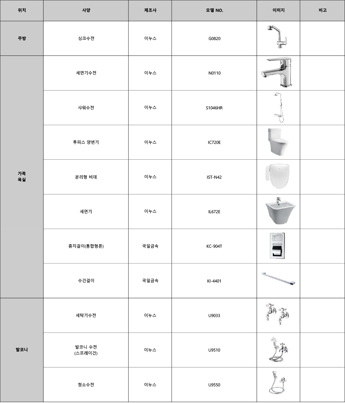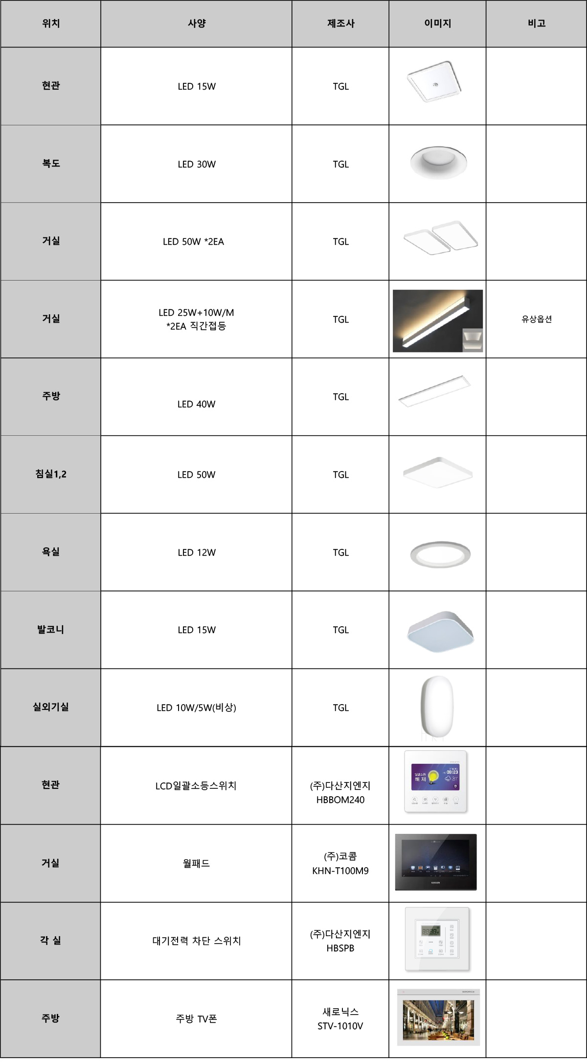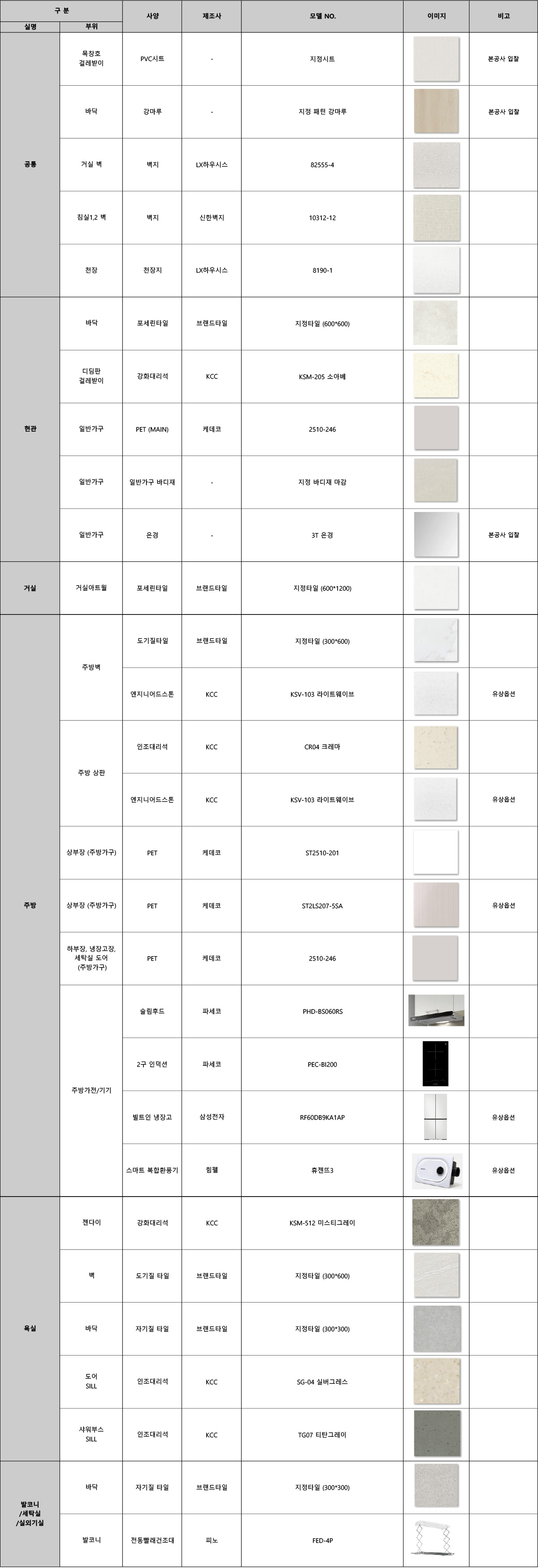 마감자재 리스트